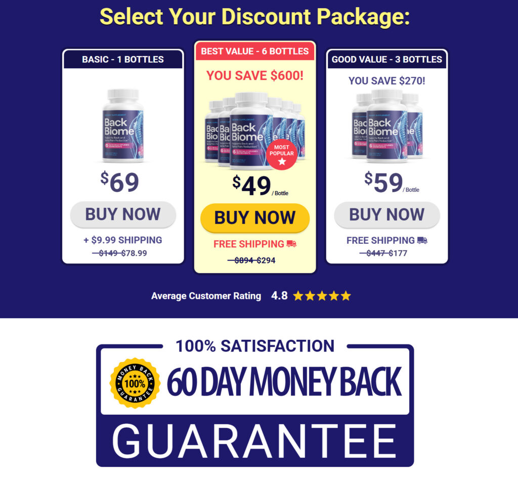 BackBiome is backed by a 100% 60-day money-back guarantee, a reflection of the manufacturer’s strong confidence in its effectiveness. This means you can try BackBiome completely risk-free.